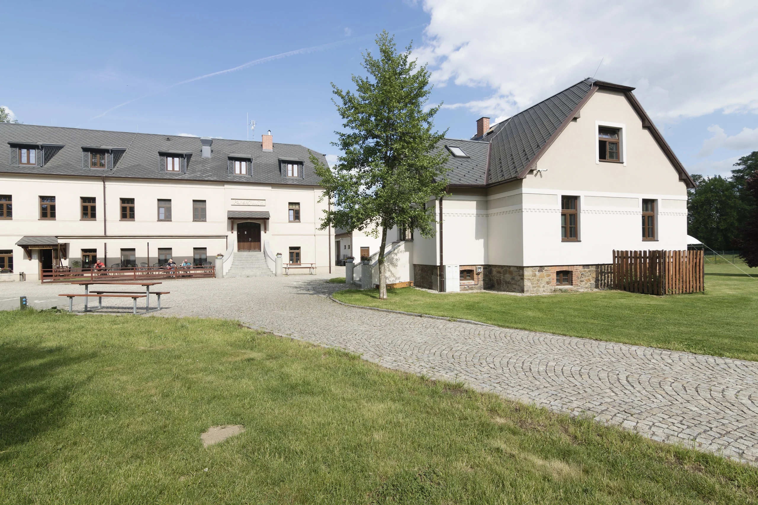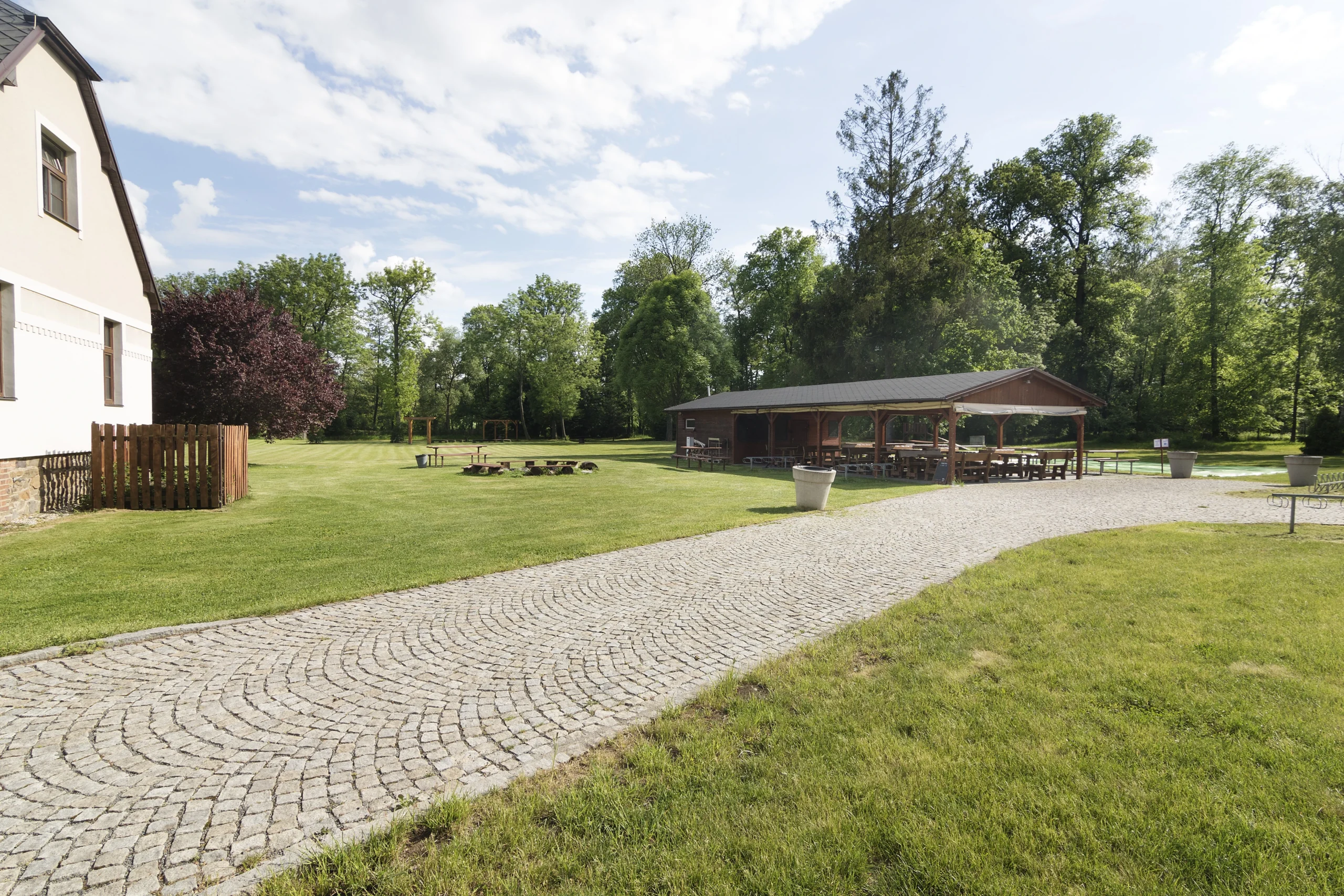 Venkovní občerstvení s posezením v dřevěné pergole je rájem cyklistů, díky své poloze blízko cyklostezky č. 551 vedoucí z Opavy až na Kružberskou přehradu.